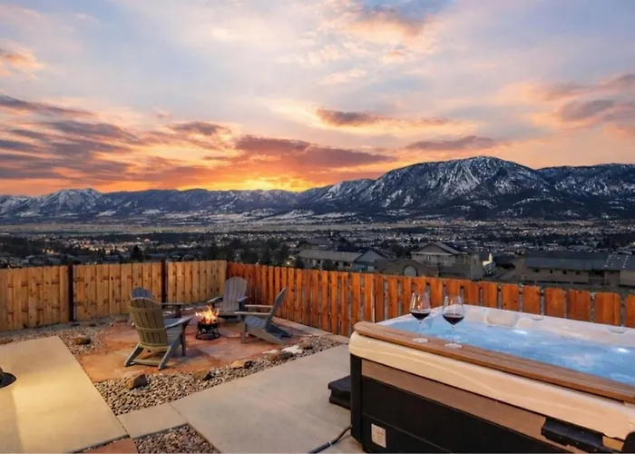 Situated only 8 minutes on foot from 300 Days of Shine, Mountain Views, Hot-Tub, Mini-Golf, Sauna, Games! Monument villa provides guests with a hot tub and a sauna for additional relaxation. Featuring access to a patio, the accommodation is located 3.8 km from Monument Hill Mountain Pass.